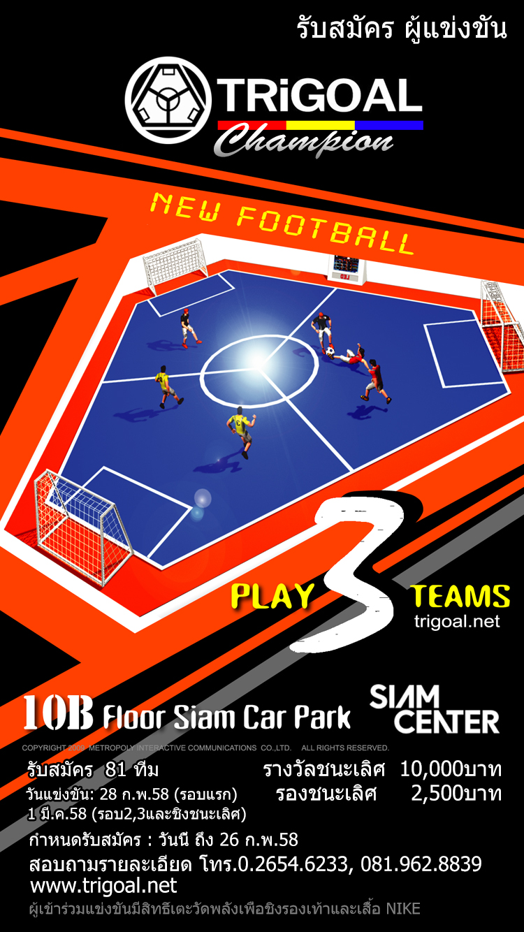 | | สนามTRIGOAL SIAM CENTER รับสมัครผู้เข้าแข่งขัน TRIGOAL CHAMPION 2015 ครั้งที่1